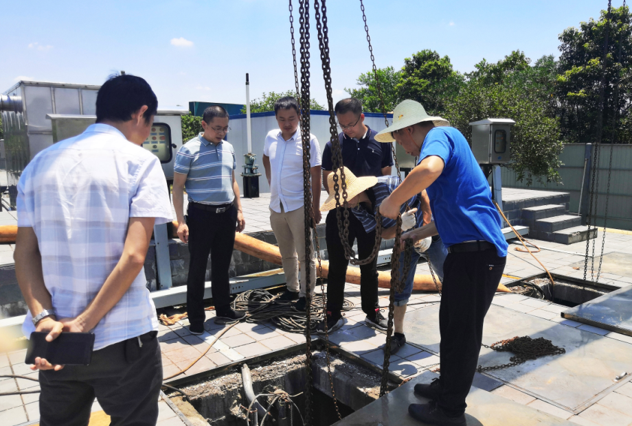 日前,由于園區(qū)清理管道導(dǎo)致永安污水廠預(yù)處理水泵堵塞,嚴(yán)重影響了污水廠的正常運(yùn)行。針對(duì)這一情況,陳宇廠長(zhǎng)一刻也不敢怠慢,立即帶領(lǐng)維修人員冒著烈日進(jìn)行搶修,恒凱環(huán)保副總裁莫唐文、污水運(yùn)營(yíng)總監(jiān)張粵湘也親臨現(xiàn)場(chǎng)指導(dǎo)搶修工作。
